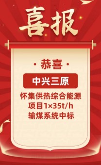 懷集供熱綜合能源項(xiàng)目1X35t/h 輸煤系統(tǒng) 中標(biāo)喜報(bào) |